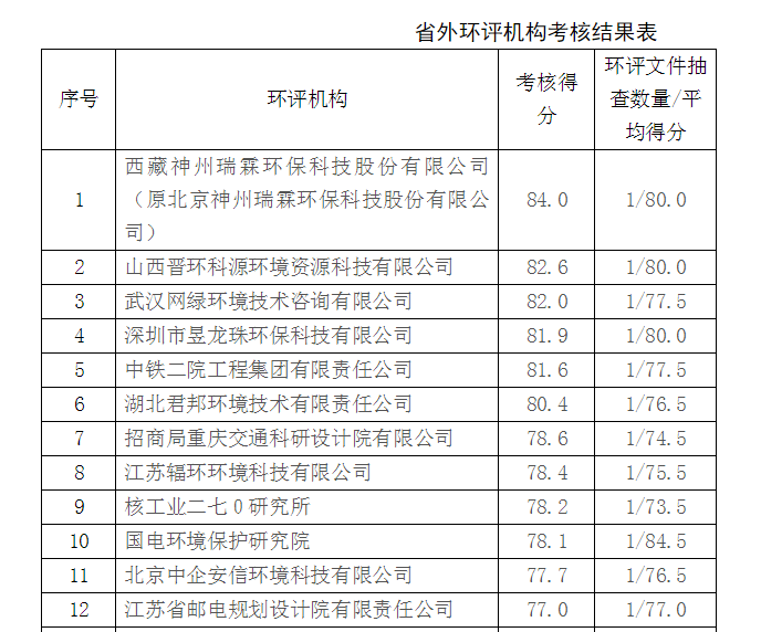 福建省環(huán)保廳于2017年1月發(fā)布了《福建省環(huán)保廳關(guān)于開展2016年第三、第四季度環(huán)評機(jī)構(gòu)抽查考核的通知》(閩環(huán)評函〔2017〕2號),并委托福建省環(huán)境影響評價(jià)技術(shù)中心組織專家對考核期內(nèi)在福建省有開展環(huán)評工作的19家省內(nèi)環(huán)評機(jī)構(gòu)和87家省外環(huán)評機(jī)構(gòu)進(jìn)行了抽查考核??己私Y(jié)果于2018年3月20日公布,在福建省外環(huán)評機(jī)構(gòu)考核結(jié)果中,我單位編制的環(huán)評文件考核得分排名第三名。